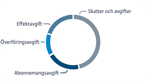 - Effektavgiften (kr/kW) och överföringsavgiften (öre/kWh) är olika på dag och natt.